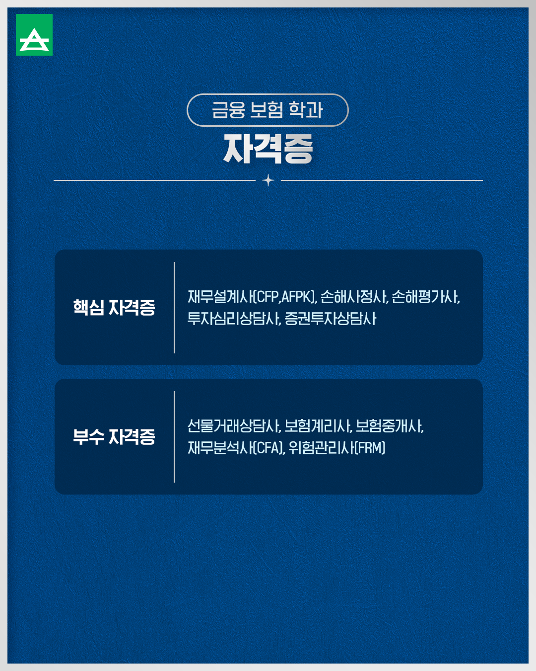 * 핵심 자격증 : 재무설계사(CFP, AFPK), 손해사정사,