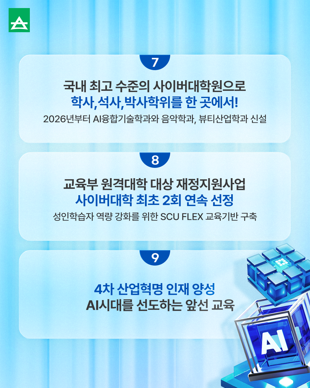 서울사이버대학교는 2026년 3개 학과 신설, 4개 학과를 개편하여