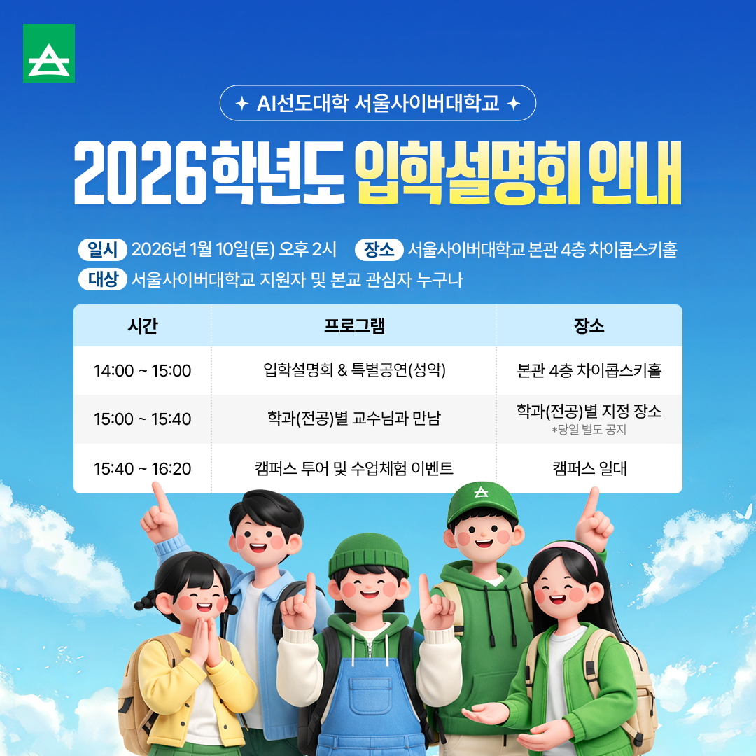 AI 선도 대학, 서울사이버대학교 2026 상반기 입학설명회 안내! 본문
