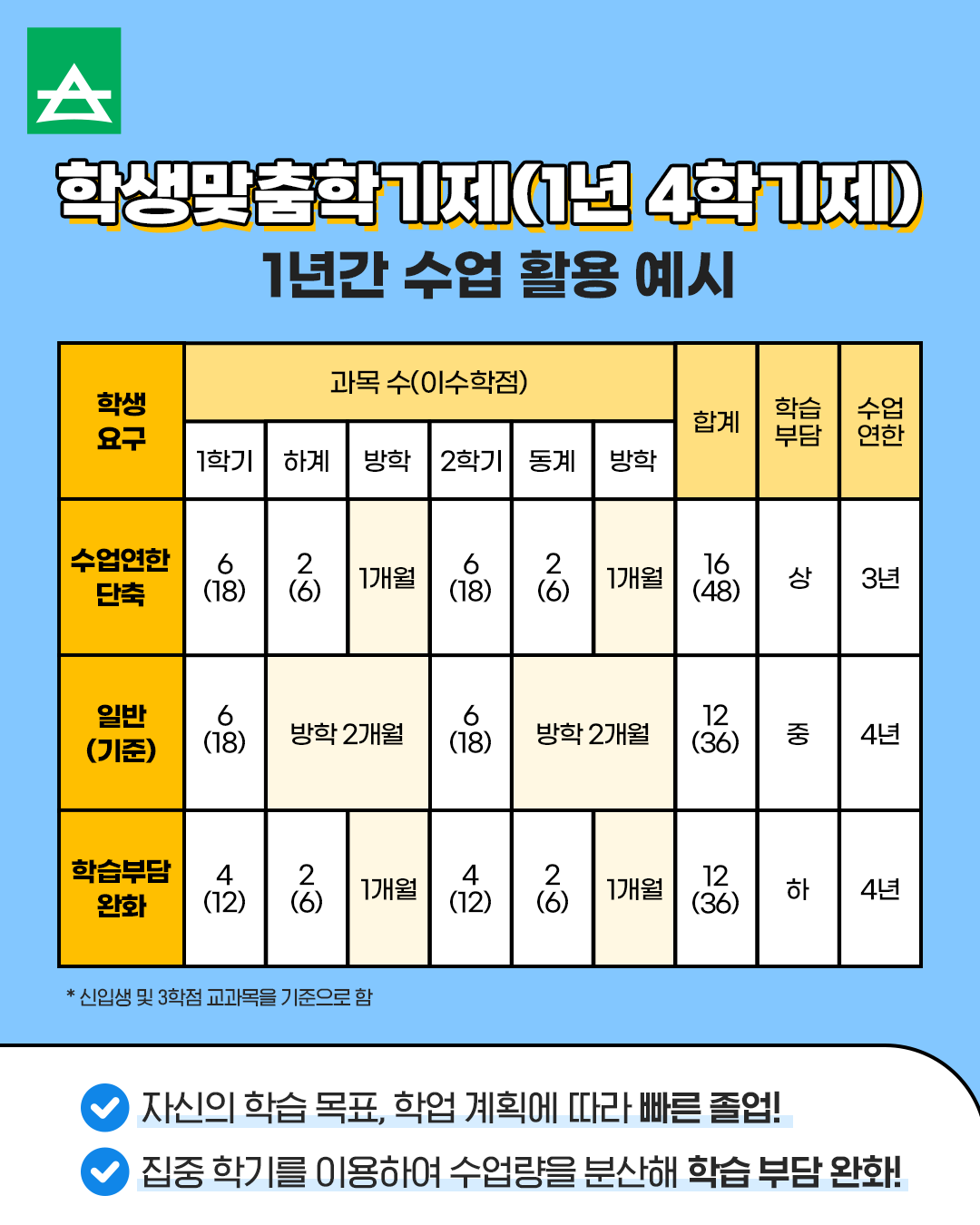 학생 자신의 상황에 맞춰 졸업 시기와 수업 연한을 결정할 수 있는