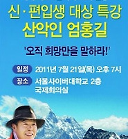| 서울사이버대학, 신,편입생 초청 산악인 엄홍길 대장 특강을 개최합니다. (0) | 2011.07.19 |